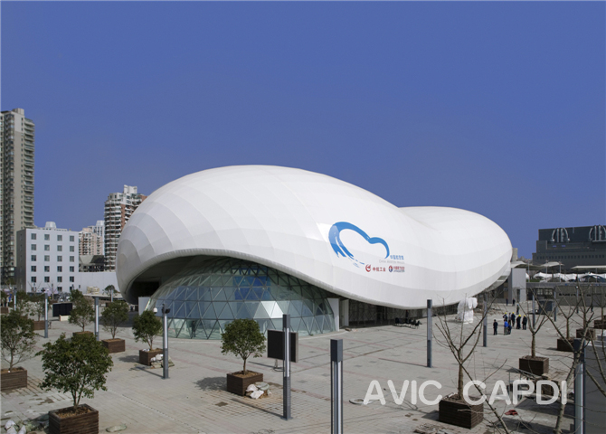 espacial.El pabellón es con longitud de 72m y anchura de 48m. |